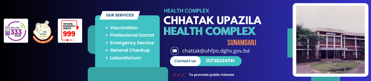 "We are proud to introduce our   Chhatak Upazila Health Complex | Sunamganj a state-of-the-art facility dedicated to providing exceptional healthcare services. Our hospital is designed with the patient in mind, offering a comfortable and welcoming environment where you and your loved ones can receive the care you need. Our range of medical services includes general medicine, surgery, emergency services, and specialized care in various fields. Whether you are seeking routine care or complex treatment, our team is here to support you every step of the way. Our goal is to provide personalized, patient-centered care that meets the unique needs of everyone. Come visit us today and experience the difference of exceptional care at our   Chhatak Upazila Health Complex | Sunamganj."